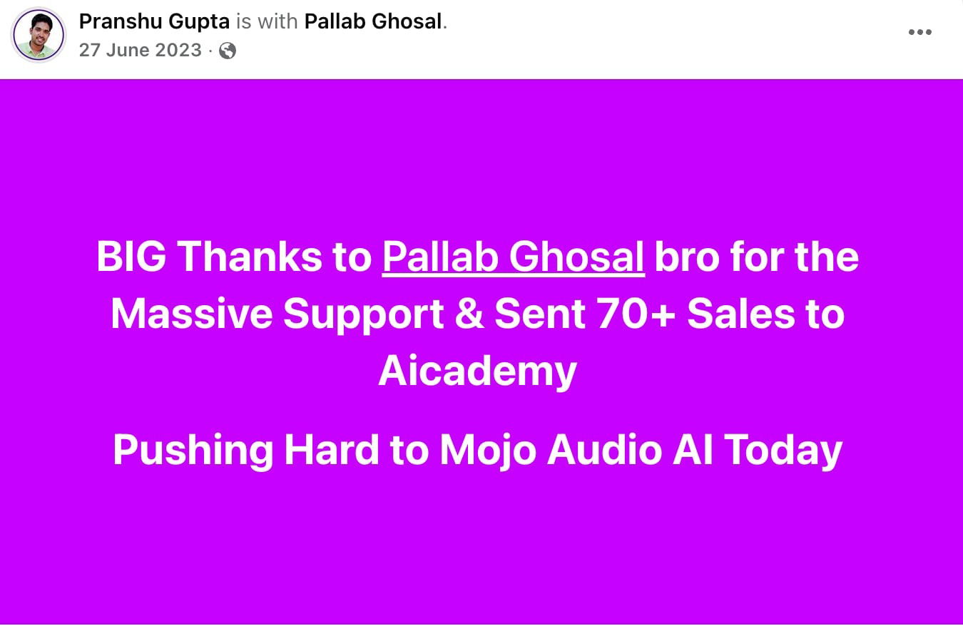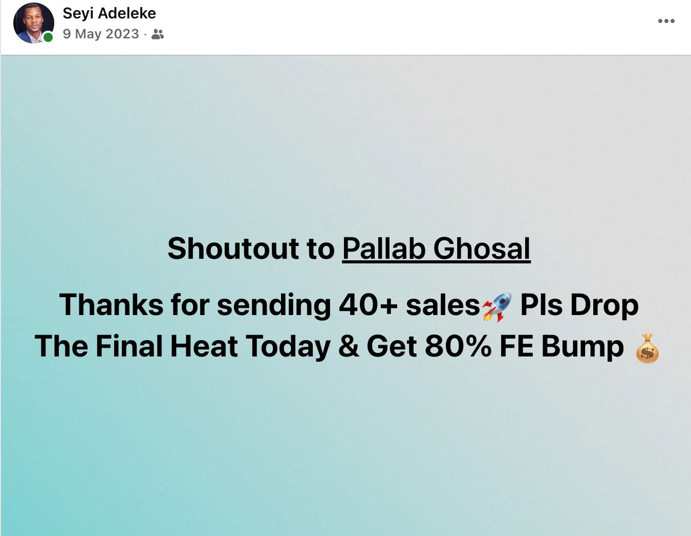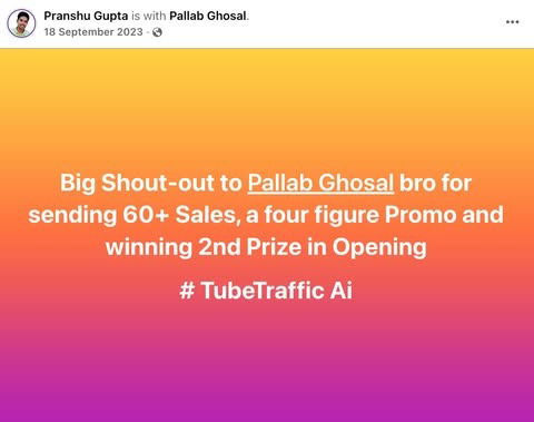 "300 Clicks...60% Opt-in...4 Sales. Pallab Always Over delivers!"